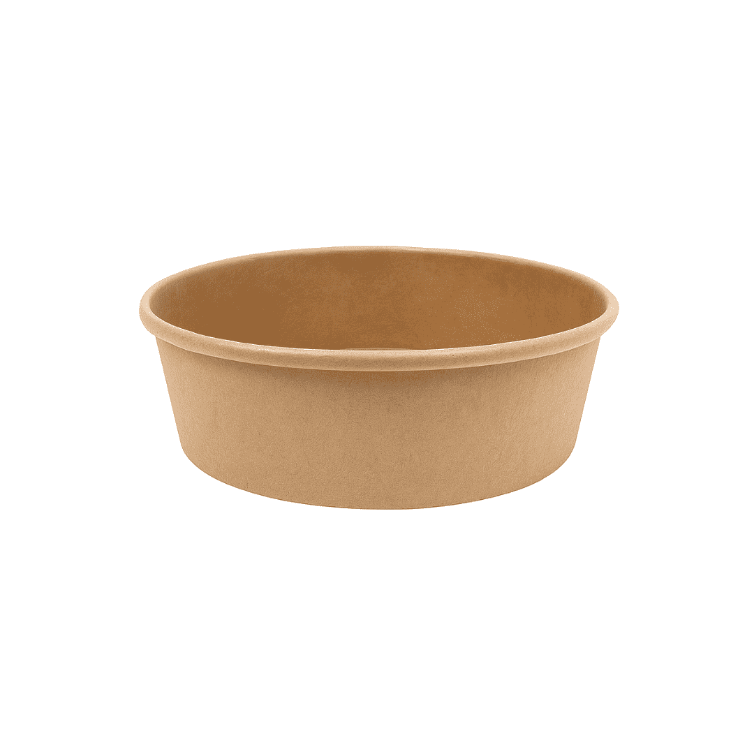 Plato tipo bowl de cartón kraft, ideal para el delivery de comida, con una capacidad máxima de 1.200 cc. Este producto está diseñado para ofrecer una alternativa ecoamigable en el servicio de alimentos.